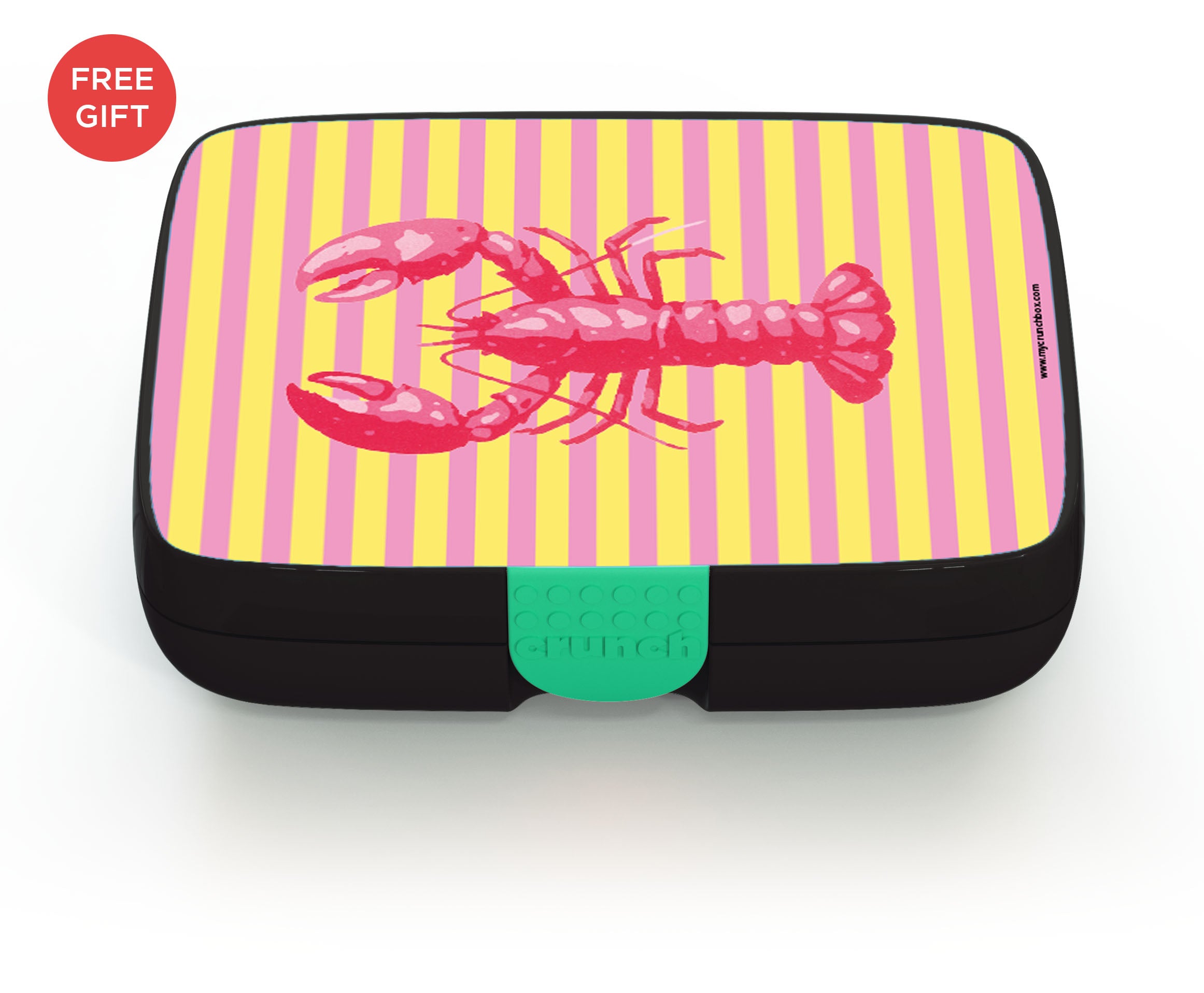 The Crunchbox includes a 5-compartment insert representing the 5 food groups, and a designer label of your choice. The inner compartment only is dishwasher and microwave safe.