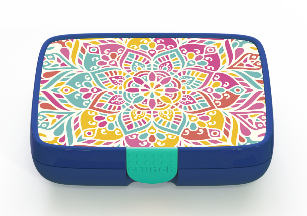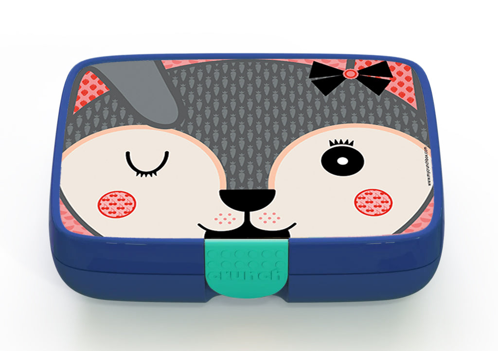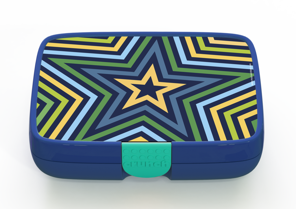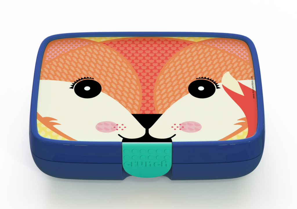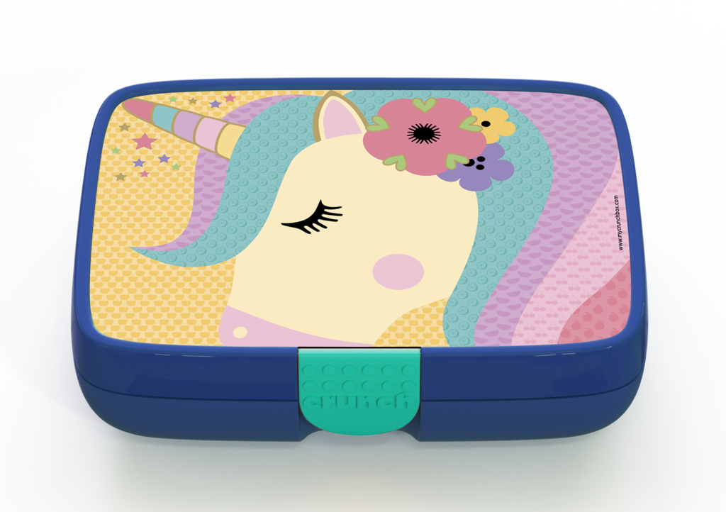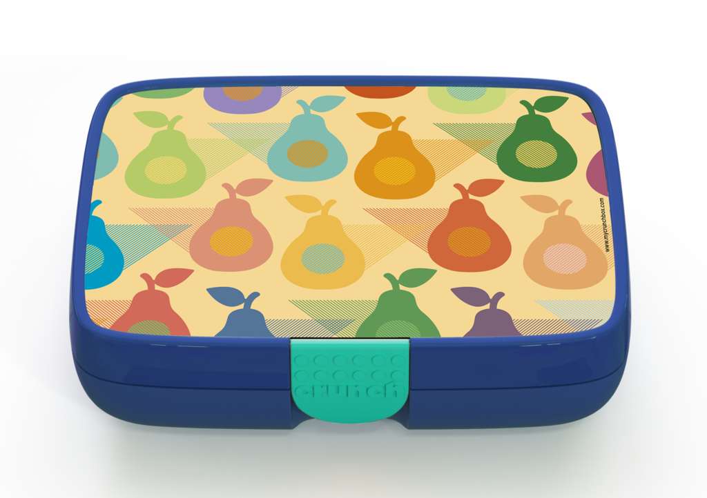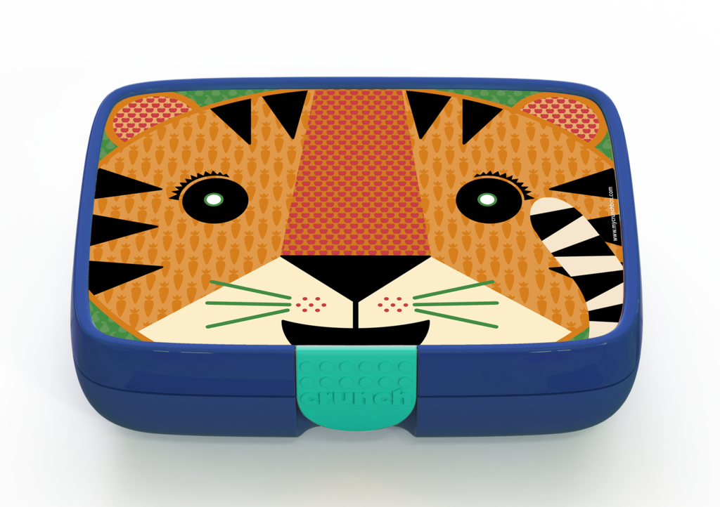 The Crunchbox includes a 5-compartment insert representing the 5 food groups, and a designer label of your choice. The inner compartment only is dishwasher and microwave safe.
