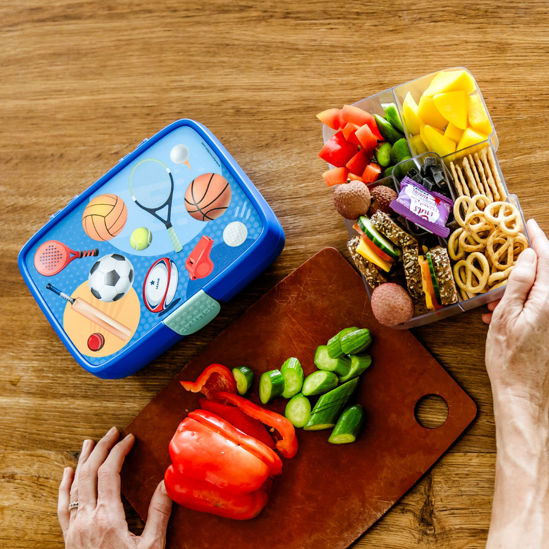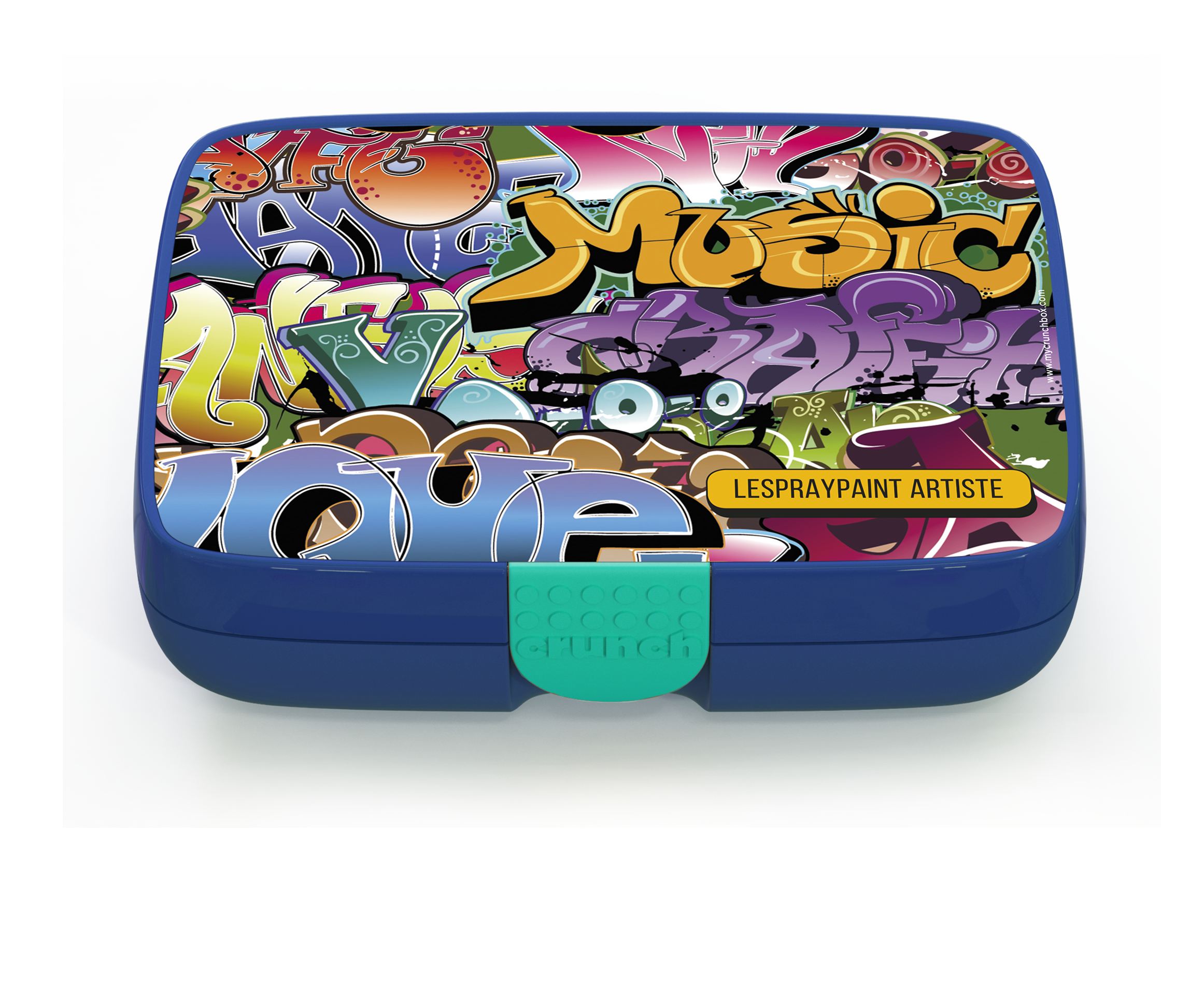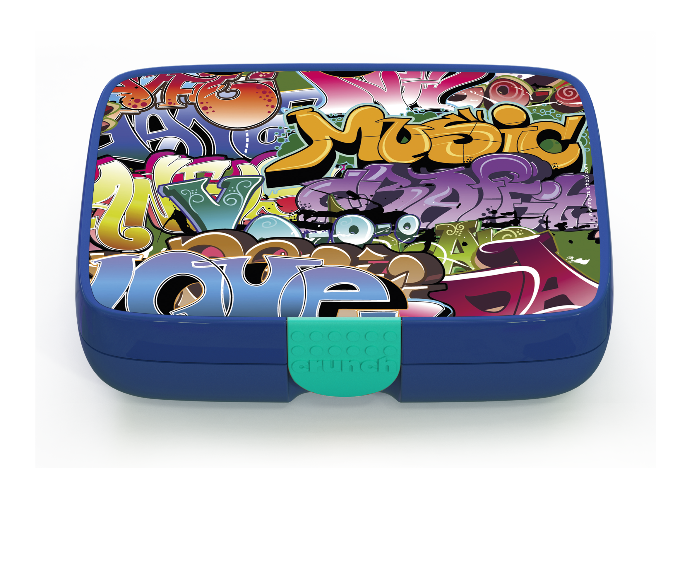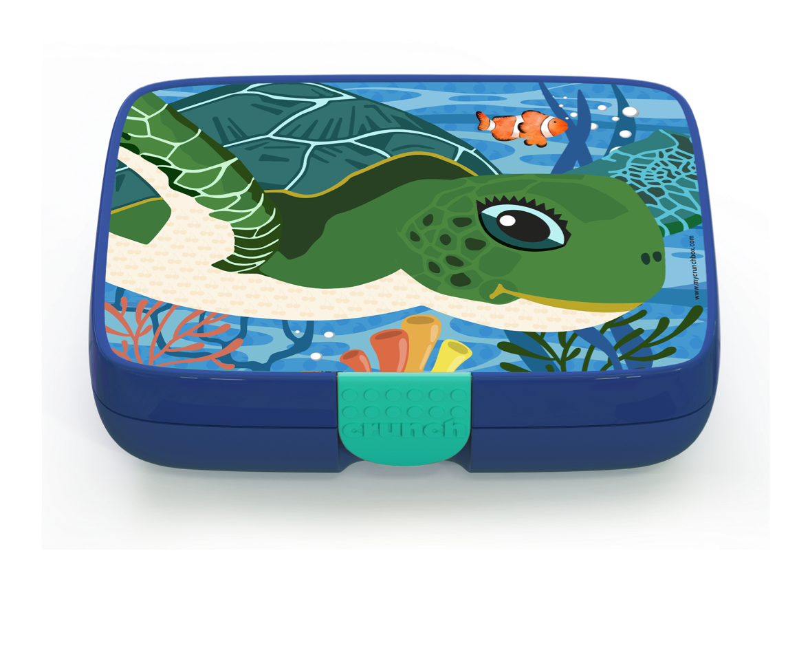 The Crunchbox includes a 5-compartment insert representing the 5 food groups, and a designer label of your choice. The inner compartment only is dishwasher and microwave safe.